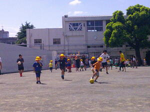 最初の校庭遊びに当たったのは、1年生と6年生。中休みになると勢いよく校庭に出てきたこどもたち。たくさんの笑顔が見られます。