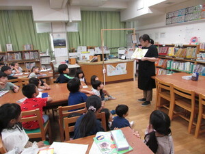 こどもたちは、司書の先生の読み聞かせをいつも集中して聞いています。