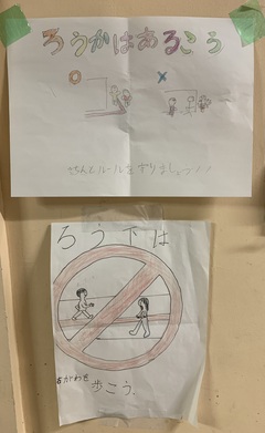 こどもたちは、ポスターを作って、校内の全ての学年の廊下に貼ったり、お昼の放送で呼びかけたりして、みんなに意識してもらえるように工夫しています。