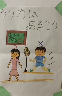 代表委員会では、全校のみんなが安全に気持ちよく過ごせるように「廊下や階段は、静かに右側を歩こう」という目標に取り組んでいます。