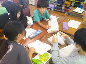 3年生は、現在、読書感想文にチャレンジしています。あらかじめ、読書感想文で書きたい1冊を夏休み中に選び、心に残ったところをメモしていました。本から学んだことや自分の思いを作文用紙に書きました。本番用の原稿用紙に書くときは、いつもより字をていねいに書いていました。書き終わると、どの子も笑顔になっていました。頑張りました。