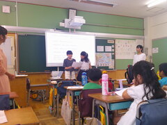 3年生が計画している「馬込クリーン大作戦」はこどもたちが自主的に行う地域清掃活動ですが、これを地域ぐるみの活動にできないものかと考え、近々地域の方々をお招きしてプレゼンをしようと考えています。どのような内容、どのような方法でプレゼンを行えば、地域に方々の理解や協力が得られそうか、相手の気持ちになって考えました。課題を見つけ、できるだけこどもたち自身で改善や解決を図ることができるように、担任の先生はファシリテーションを心掛けながら授業を進めていました。