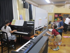 友達と教え合ったり、「せーのっ」で合わせてみたり、演奏できるところが増えるように、みんなそれぞれ一生懸命。