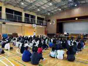 気持ち高まる音楽会をさらに盛り上げようと、今朝は全学年が体育館に集まって集会が行われました。