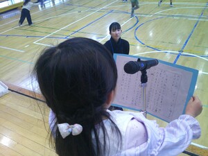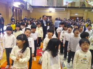児童代表の言葉は1年生。広い体育館、たくさんのこどもたちの前で、自分の振り返りやこれからがんばりたいことを堂々と発表しました。頼もしい!