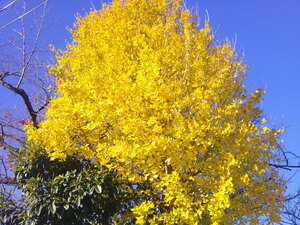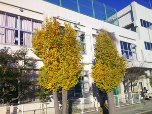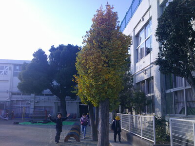 校庭にあるイチョウの木は、葉の色が少しずつ変化していく最中で、今は緑と黄色のグラデーションがきれいです。