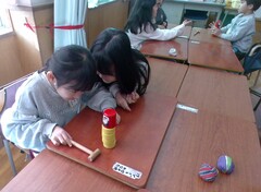 「なぜだろう。」という声がありましたが、輪を通らなくなったのは、金属の体積が大きくなったからだということを実感していました。