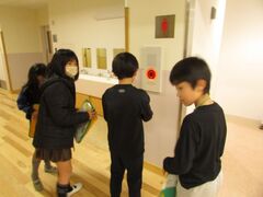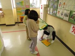 3年生は、社会科の学習で消防の学習をしています。校内にある消防施設について調べました。消火栓の中には初期消火のためにホースが入っていてすぐに消せるようになっていることや、防火扉の他に防火シャッターがあること、何気なく見ていた消火器が校内にいたるところにあることなど、初めて知ることがたくさんありました。