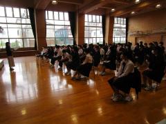 一年生全員が体育館に集まり、薬物乱用防止教室を受けました。