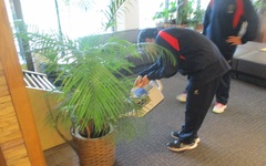 昨日、飼育栽培部の部員と、体験入部の1年生が、指導員の先生の見本を見ながら、植え替えを行いました。
