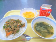 麻婆茄子丼・わかめスープ・サイダーポンチ