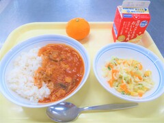 バターライスのクリームソースかけ・サウピカンサラダ・くだもの(巨峰)