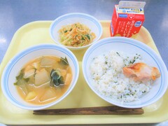 わかめごはん・鶏肉の塩こうじ焼き・糸寒天のごま酢和え・冬瓜のみそ汁