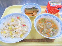 さつま芋ごはん・さんまの筒煮・沢煮椀