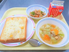 ポテサラトースト・豚肉と野菜のナポリ風ソテー・豆と野菜のスープ