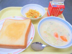 メープルシロップトースト・サーモンのクリームシチュー・サウピカンサラダ