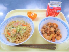 五目あんかけ焼きそば・魚とじゃがいもの旨塩揚げ・みかん