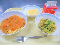 スパゲッティあけぼのソース・グリーンサラダ・りんご