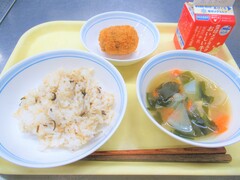 塩昆布とじゃこのごはん・かぼちゃコロッケ・みそけんちん汁