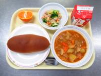 黒砂糖パン・牛乳・ボルシチ・ブロッコリーとツナのサラダ・くだもの(みかん)