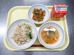 炒り豆腐の混ぜごはん・牛乳・魚とごぼうの磯香揚げ・みそ汁