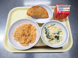 キムタクごはん・牛乳・揚げぎょうざ・トック入りたまごスープ