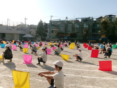 いよいよ運動会本番が目前に迫ってきました。4年生は、カラースカーフを使って表現運動をします。練習を重ねるたびに、息がぴったりに揃ってきました。心が一つになる4年生の姿をぜひお楽しみに。(4年担任)