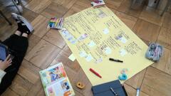 国語ではミステリー作品『友情のかべ新聞』を読み解く学習をしています。教科書の作品としては珍しいジャンルですが、こどもたちも楽しく読み深めることができていました。面白かったところを作文に書いて、友達と感想を交流していきます。