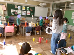 お客さんに遊び方を丁寧に説明したり、声を出してお店を盛り上げたり、上級生が下級生に優しく声を掛けたりしている素敵なこどもたちの姿がたくさん見られました。(特活)