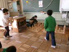 1月から準備してきたこどもまつりが、今週末に迫ってきました。2年生も各クラスでリハーサルを行い、最終調整をしています。自分たちだけでなく、お客さんが楽しめるお店にすることを目標に、1組はゲームセンター、2組はわくわくまつり、3組は人間すごろくとう走中の準備をしています。試行錯誤しながらも、2年生なりに改善を図る姿勢に大きな成長を感じています。(2年担任)