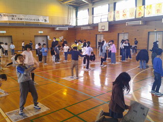 2月18日(水曜)3・4校時、体育館にて、「3年生と若竹学級の交流会」を行いました。「じゃんけん列車」「だるまさんの一日」「もうじゅう狩り」「王様ジャンケン」などそれぞれのクラスが司会や進行をするなど、進んで盛り上げていました。来年4年生になるとクラブ活動などで若竹学級の児童と一緒に活動する機会が多くなります。この交流会を通して児童同士、協力して仲良く楽しんでいました。