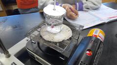 先週に引き続き、今週も理科室で実験を行いました。先週の実験では、水を熱すると湯気が出てきたり、中からあわが出てきたりしました。その湯気やあわの正体は何か、予想を立てた上で興味深く実験をしていました。(4年担任)
