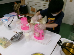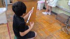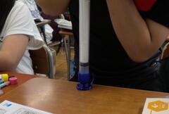 4年生の理科では、「とじこめた空気と水」の学習に入りました。日常生活の中から疑問を出し、予想を立てながら学習をすすめています。実験では、空気でっぽうでたまを飛ばしてみたり、上から押しつけたりして、空気は体積が変化するかを調べました。(4年担任)