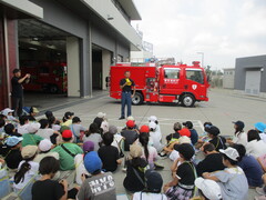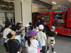 3年生の社会「火さいから人々を守る」の学習では、社会科見学で大森消防署馬込出張所に行きました。消防士の仕事や消防車の仕組みに興味をもって見学しました。メモを取ったり、質問をしたり、火災から人々を守るために消防士はどのような工夫をしているのか学習を深める様子が見られます。(3年担任)