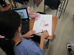 9月の図工では、自分のオリジナルたまごから生まれる、自分の好きなものや動植物を描いています。好きな動物を描く子もいれば、自分の宝物や習い事の道具を描く子、オリジナルの生物を描く子もいて、思い思いに制作活動を楽しむ様子が見られます。(2年担任)
