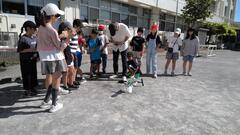 理科「とじこめた空気と水」の学習の発展として、ペットボトルロケットを飛ばしました。空気は押すと縮み、元に戻ろうとする性質を振り返り、予想を立てながら実験を楽しみました。(4年 担任)