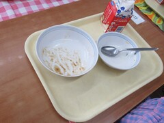 入学して3日目を迎えた1年生は、8日(水曜)に初めての給食を食べました。4校時に食事のマナーや配膳のきまりを確認し、給食の時間を迎えました。放送委員が流すお昼の放送では「1年生になったら」が流れ、温かい雰囲気に包まれながら、カレーライスを頬張る姿が見られました。(1年担任)