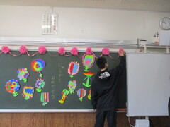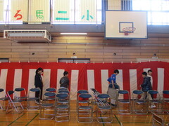 4月6日の入学式に向けて6年生が式の準備を手伝いました。