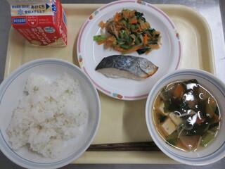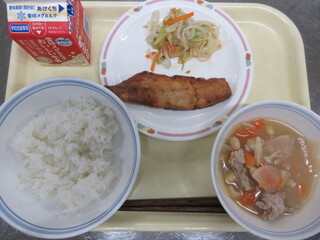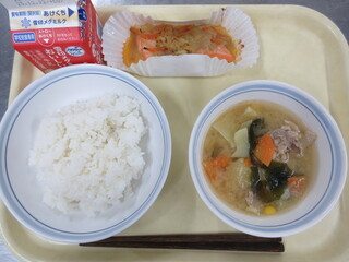 ご飯、さけのちゃんちゃん焼き、どさんこ汁、牛乳