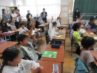 「はたらく消防の写生会」(2年)の表彰に、大森消防署馬込出張所の方が来校され、