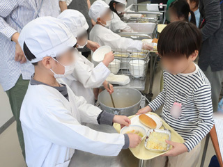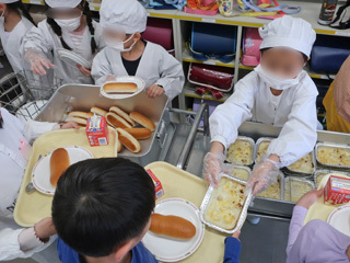 1年生の教室で、6年生が1年生の朝の支度を手伝い始めました。