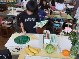 校舎内を歩くと、どこかのクラスが絵を描いている場面に出会います。