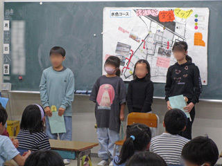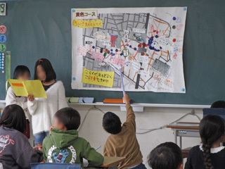 総合的な学習の時間に取り組んできた「地域安全マップ」が完成したので、2年生に向けて発表しました。