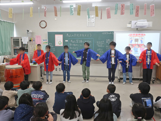2月下旬から3月上旬に、総合的な学習の時間「馬込の文化を伝えよう」のまとめとして、5年生が4年生に馬込大盆踊り大会の発表を行いました。