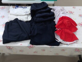 卒業生の皆さんから、たくさんの体育着や紅白帽をお譲りいただきました。