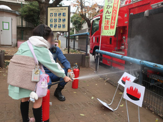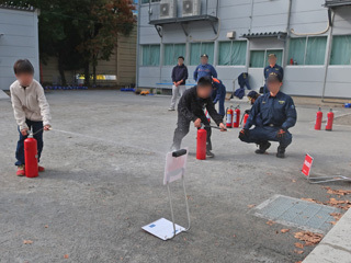 大田区防災危機管理課の方に中庭に煙体験ハウスを設置いただき、火災を想定した避難訓練を行いました。