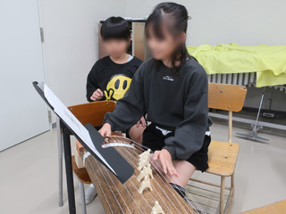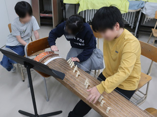 師範の先生にお越しいただき、箏の演奏を体験しました。