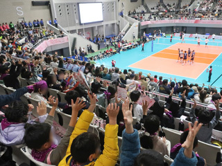 そこで、東京都教育委員会が提供する「笑顔と学びの体験活動プロジェクト」の一環として、駒沢オリンピック公園総合運動場体育館へ、バレーボール男子の試合を観に行きました。