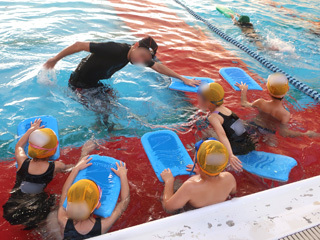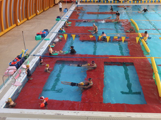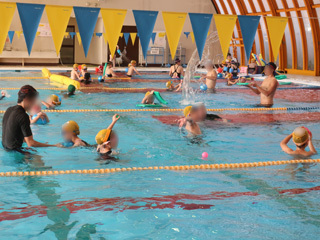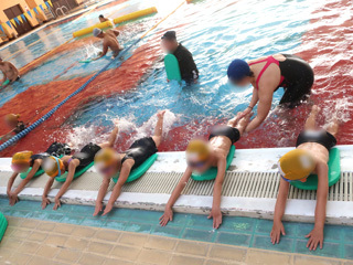 今年度も平和島公園屋内プールで、インストラクターの皆さんに教えていただきました。