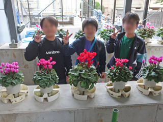 総合的な学習の時間を中心に、シクラメンを大事に育てていきます。